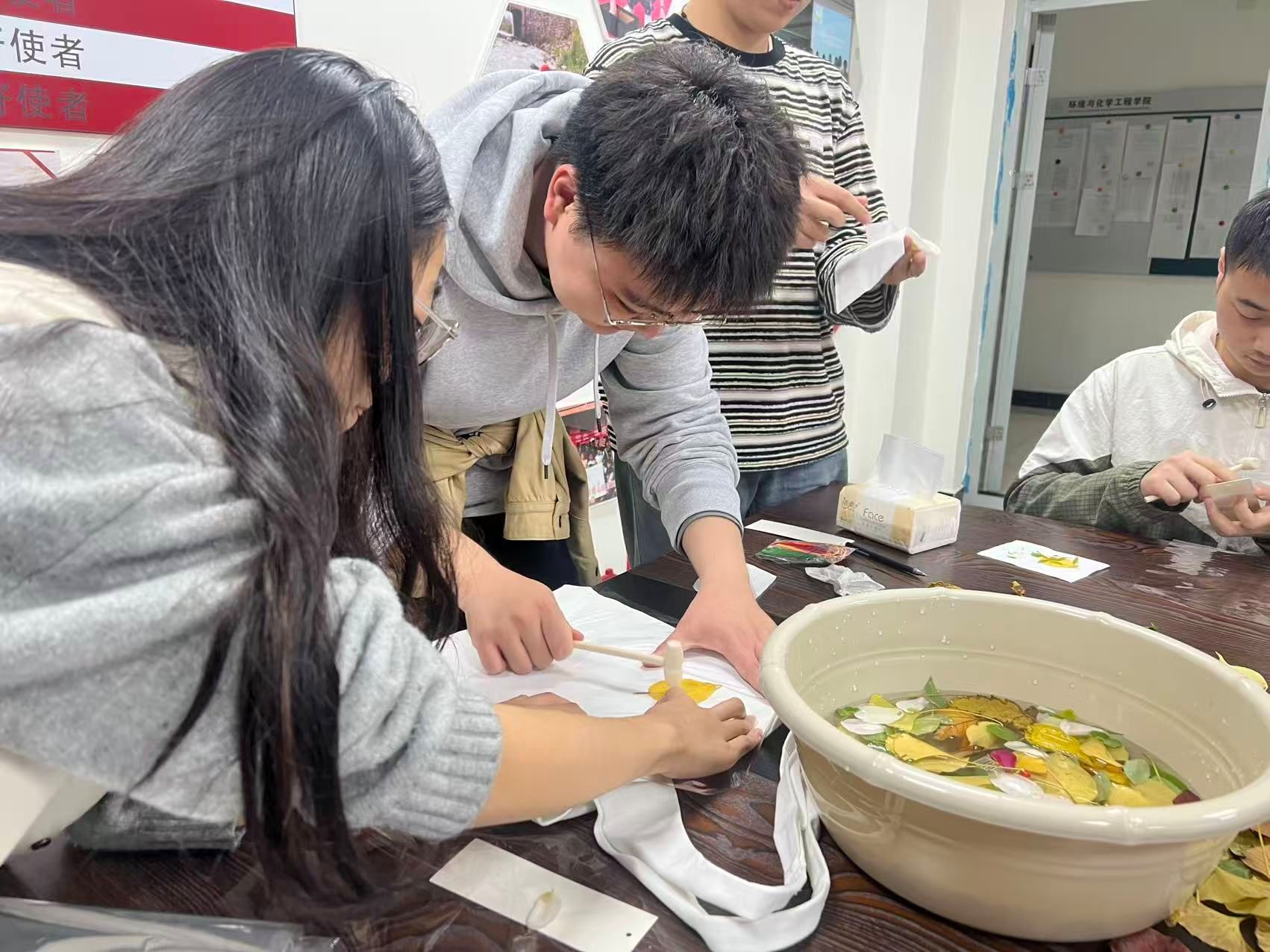 11月10日,色情视频“化蝶”手工坊在“一站式”学生社区举办“落叶印象,重塑新生”植物拓印活动。本次活动吸引了二十几位学生踊跃参与。