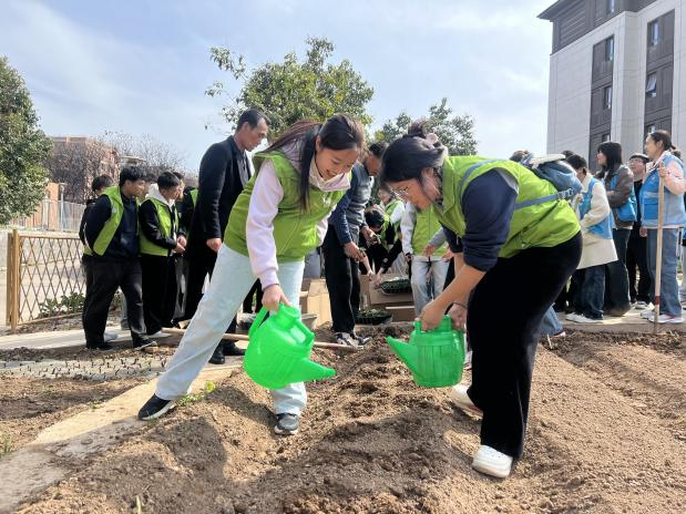 清理后的土地,成为希望的“培养皿”。随着季节更迭,同学们在这里种下菠菜、豆角、油菜、番茄,以双手为器,以汗水为媒,在日常管护中观察生命成长,理解生态循环。“耕读”不止于劳作,更是心灵的滋养——从春播到秋收,作物的每一段生长周期,都映照着学子们的成长足迹。在躬身实践中,他们逐渐“合成”出责任、耐心与对生命的敬畏