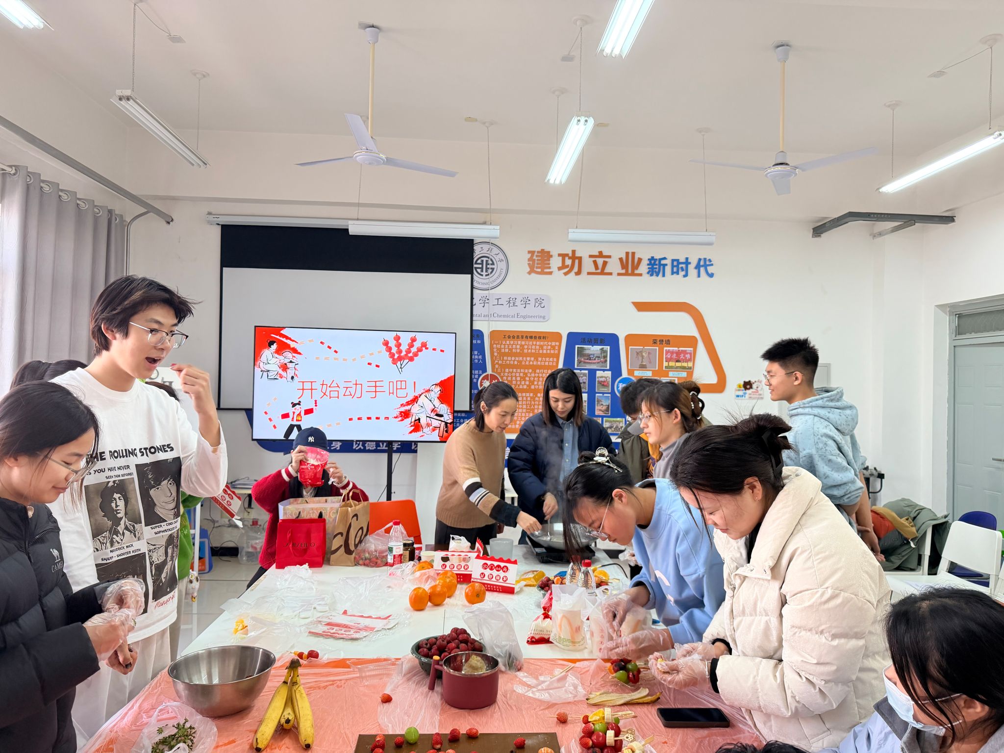 随后,冰糖葫芦手工制作环节将现场气氛推向高潮。师生共同参与,从水果清洗、竹签穿串,到糖浆熬制、裹糖成型,各个环节衔接有序、互动融洽。晶莹的糖衣包裹着鲜艳的水果,传递着真挚的祝福与情谊。同学们在亲手制作中感受传统手工艺的魅力,在分享成果中体悟协作与感恩的温暖。