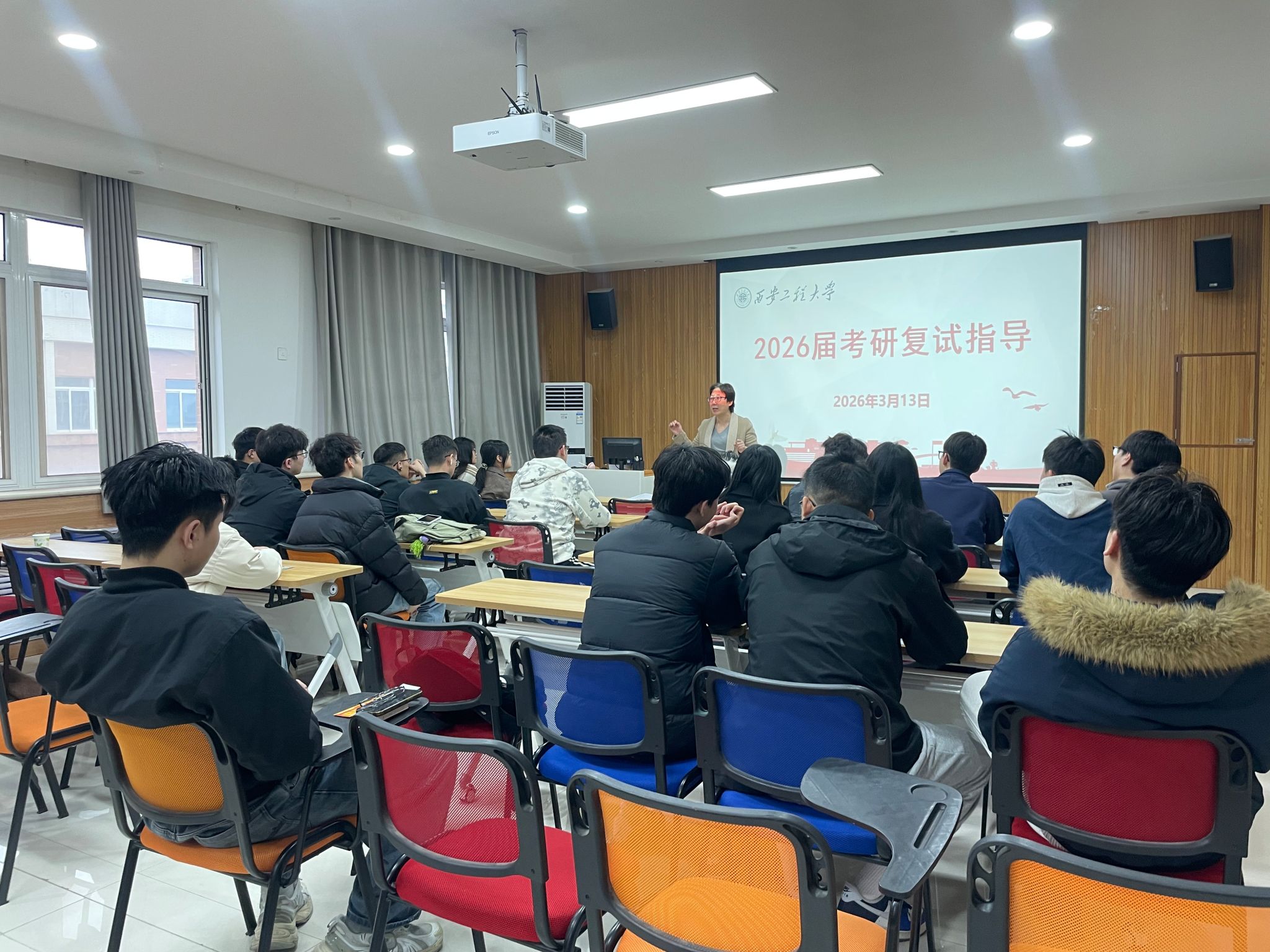 副院长武峥结合多年研究生培养经验,从多个维度为考生提出备考建议。她提醒同学们重视毕业论文准备,确保学业质量;在志愿填报与院校选择方面,强调要结合自身实际科学决策。武峥勉励学生在面试中展现自信大方、从容作答,全面呈现专业素养与个人潜力。她指出,“选择大于努力”,提醒同学们在冲刺阶段保持信息畅通,密切关注目标院校动态,做出理性选择。