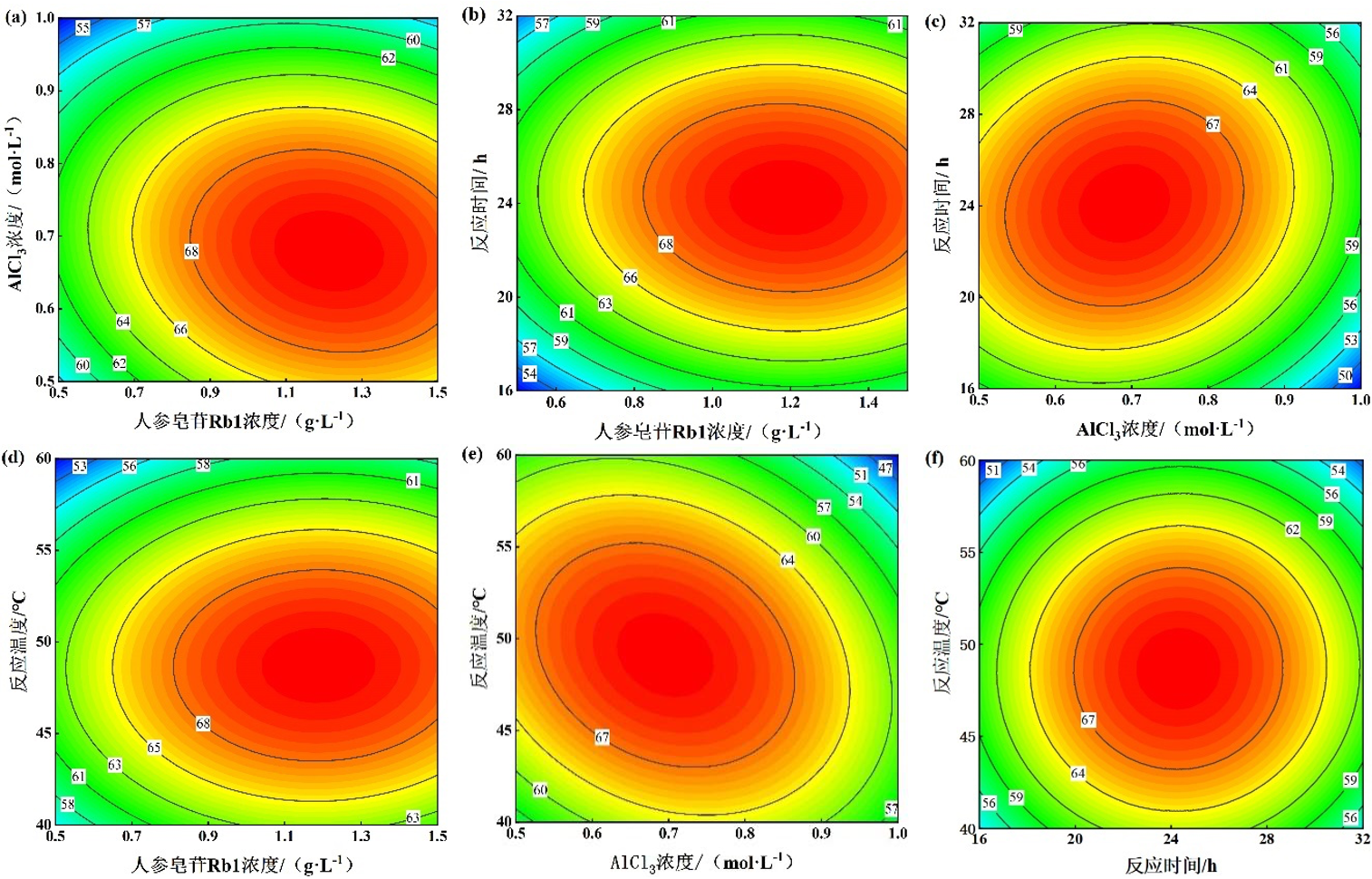 在绿色化学催化工艺开发与过程优化方面,课题组针对稀有人参皂苷转化过程中存在的反应条件苛刻及效率受限等问题,构建了基于金属离子催化的高效转化体系。通过筛选低成本金属离子Al3+催化剂并引入绿色溶剂体系,结合单因素实验与响应面优化方法,系统调控关键反应参数,建立了温和条件下的定向转化工艺。该研究从反应路径调控与催化机制层面入手,提升了目标产物生成的选择性与过程可控性,同时兼顾环境友好性与工业可行性,为稀有人参皂苷Rg5的规模化绿色制造提供了新思路。研究成果以“AlCl3催化制备稀有人参皂苷Rg5的工艺优化”为题发表于国内CSCD期刊《应用化工》,化学与工程技术专业2022级研究生高一平为第一作者,曹翠老师和孙先锋老师为共同通讯作者,色情视频 为通讯单位。
