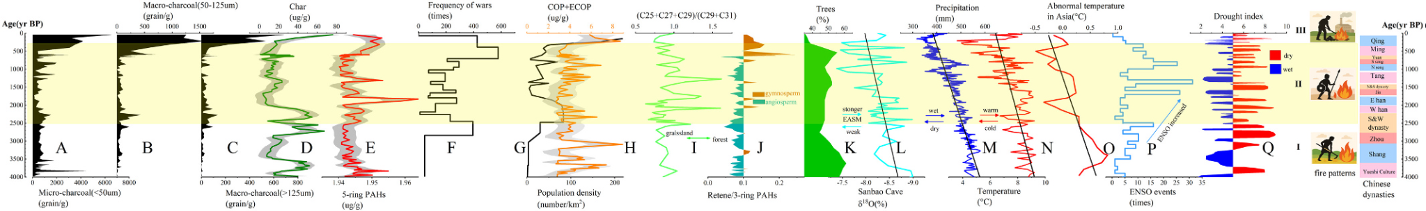 2026年初,谭志海副教授(通讯作者)指导2023级环境工程专业硕士研究生雷昊(第一作者)等发表题为“Periodic coupling of anthropogenic fire patterns and East Asian monsoon variability over the past 4000 years”的研究论文。该文在古火研究领域取得创新突破,通过结合粪甾醇、黑碳等多重生物标志物并引入机器学习模型,首次定量揭示了人类活动诱发火灾模式转变。研究以山东广饶沉积剖面为对象,重建了过去4000年火灾演变过程:早期以农业开垦相关的低强度焖烧为主,中期以战争和社会动荡相关的高强度燃烧为特征,近300年来则表现为在人类活动增强背景下广泛发生的生物质燃烧。同时,火灾活动的周期变化与东亚夏季风在百年尺度上的波动存在显著关联。机器学习分析结果表明,人类活动对火灾格局的影响不断增强,其贡献率由约23%上升至超过50%。该研究在方法论上为区分自然气候变化与人类活动影响提供了全新范式,成果不仅深化了对东亚季风区人地关系的理解,也为评估现代人类活动的生态环境影响提供了重要历史依据,展现我校研究生卓越的跨学科创新能力。